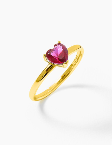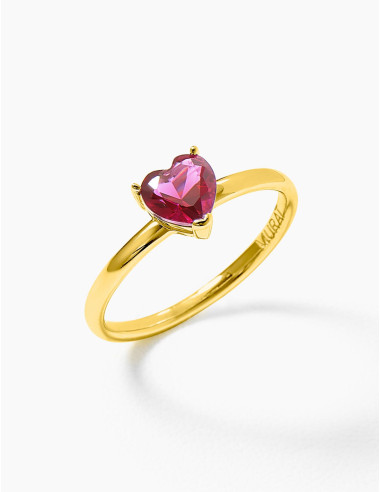 Sa pierre centrale, un oxyde de zirconium rouge taillé en cœur, capte la lumière avec intensité et affirme une élégance pleine de caractère.